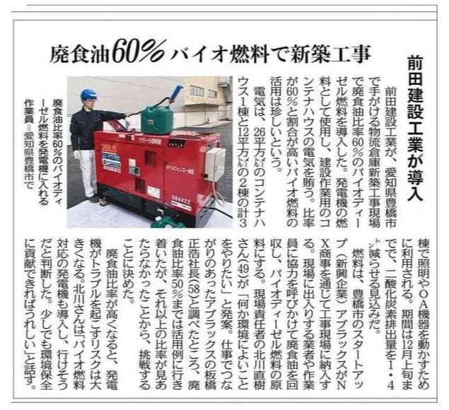 2025年10月21日 前田建設工業様、NX商事様との取り組みが中日新聞に掲載されました